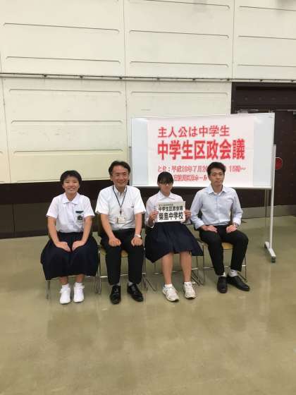 7月20日(水)終業式の日の午後から、今年で三回目となる「東淀川区中学生区政会議」が東淀川区役所で開催され、柴島中からは、生徒会執行部から2名参加をしてきました。