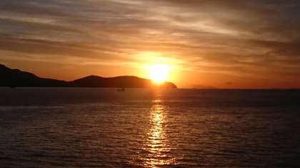 おはようございます。船上デッキに出て、みんなで日の出を見ました。太陽と光の道、美しい月と明けの明星。生徒たちの輝かしい未来を象徴しているようなシーンでした。昨日の晴天と言い、柴島中学校70期生、持ってます!!