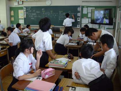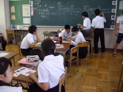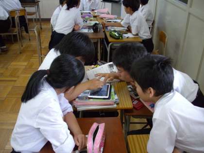 柴島中学校では、本年度大阪市教育委員会より「iPadmini」をの借りることができました。それを使って早速協同学習が展開されています。