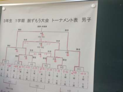 7月4日(金)5.6時間目の特活の時間に、3年腕相撲大会を行いました。