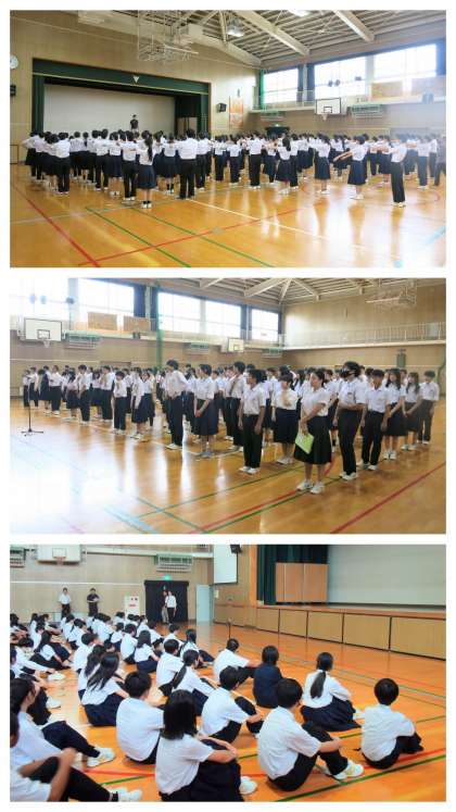 さらに、戦後80年の一つの節目を迎えたこの夏、各地での慰霊祭や催しの報道や、未だに終結の見えないウクライナやイスラエルでの戦争を通じて、「平和」について改めて見つめ直し、自分が今後どのような行動をすべきが考えてほしいと伝えました。