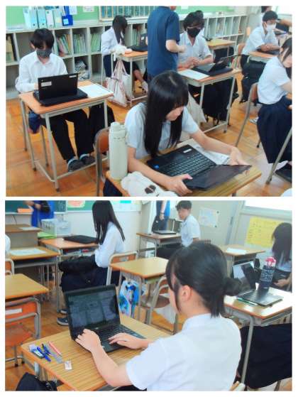 1日での5教科は、かなりハードですね。また、加えて、「生徒アンケート」を学習者用端末を用いてオンラインで実施しました。