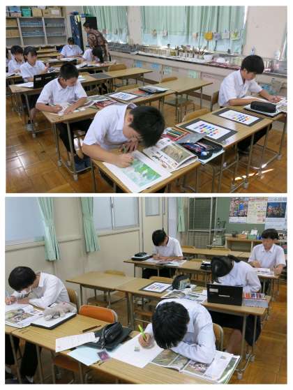2年生美術 色合いの再現に集中です(9月9日)
