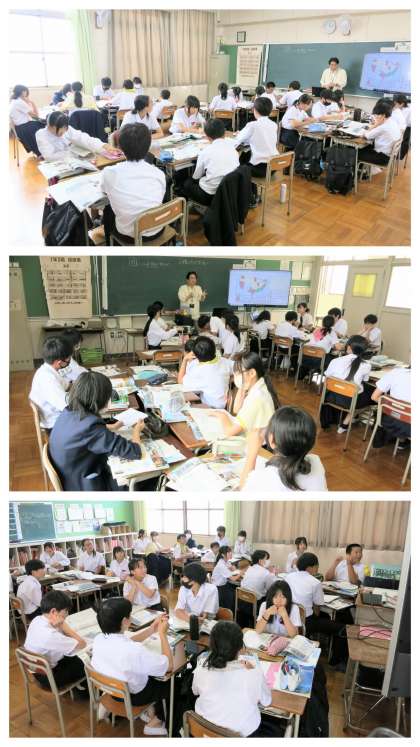 1年生の社会の学習の様子です。世界地理で「北アメリカ州(アメリカ合衆国・カナダ・メキシコ)」について学習を進めています。