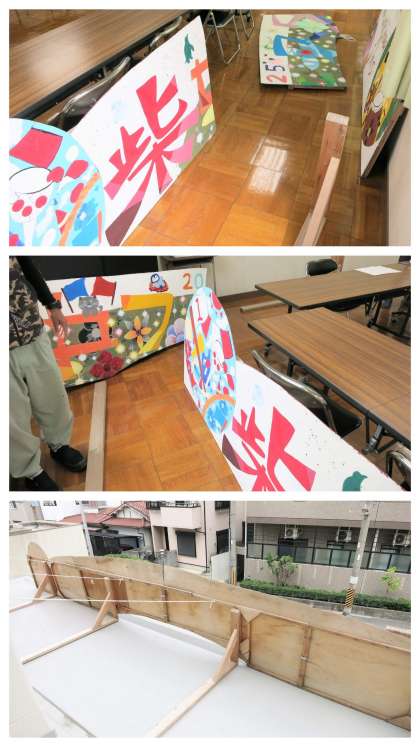美術部の制作で、管理作業員さんに本日に設置していただきました。