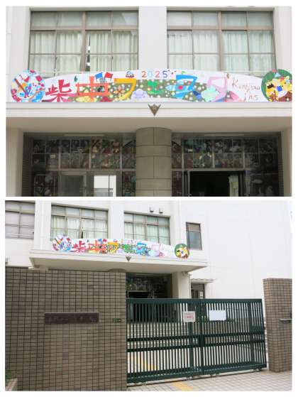 今年も恒例の正面玄関の上に「柴中フェスタ2025」の看板が飾られました。