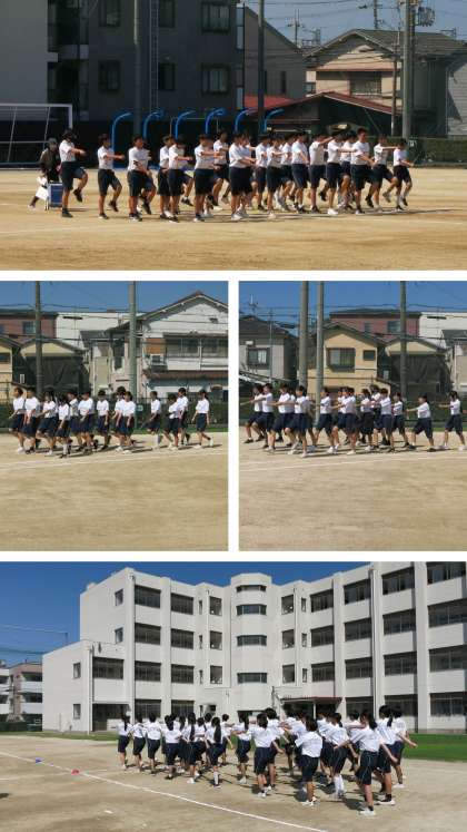 9月も折り返しを迎えたのですが、秋の気配が訪れません。授業は2時限目でしたが、気温もどんどん上がる中、激しい運動は避け、体調面も考慮しながら、約5分ごとに給水・休憩を取りました。