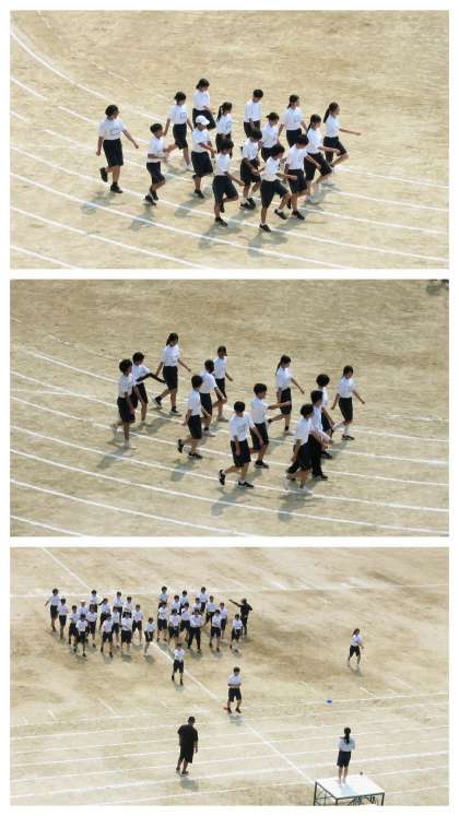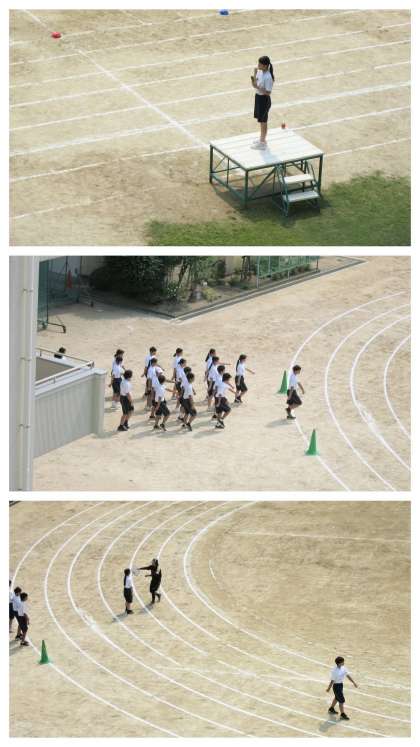 手足の動きを揃える、スピードも一定に、コーナでの横の列、特に向こう正面からの直角に曲がっての正面への移動など、細かい所まで意識して、短時間で仕上げていきました。