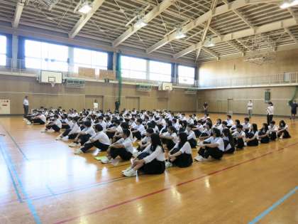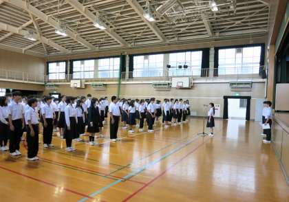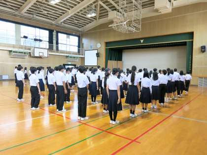 3つ目は、今日から来年の2月末まで、格技室棟(プール棟)の全面塗装工事が始まります。工事車両の進入や資材の搬入、校内での動きの不自由さが出てくるかもしれません。各自でも、安全に注意して学校生活を送ってください。
