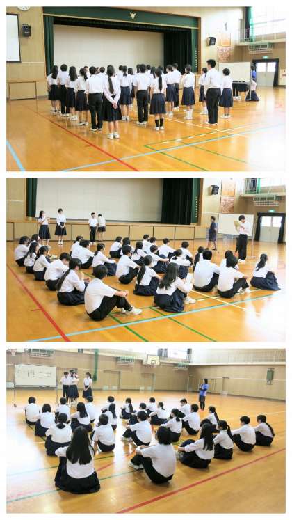 また、担当の先生からは、「文化発表の部」での「学年劇」を振り返り、劇・合唱・ダンスと盛りだくさんの構成にも関わらず、一人一人が責任をもって自身の役目を果たした結果、素晴らしい成果をもたらした、この経験を、必ず、スポーツ発表の部にもつなげていきましょう、とお話がありました。