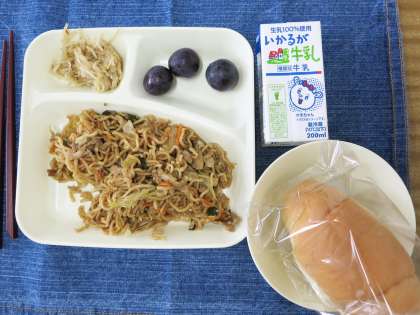 ぶどう(巨峰)は、糖度が高く、種なしで、配膳は一人3粒ですが、どのクラスも余分に入っており、お替りで増やしてもらえ、生徒は喜んでいました。