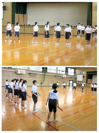 2年生の体育の学習の様子です。2時間目、雨は既に止んでいましたが、グランドのコンデションが悪いため、体育館での授業となってしまいました。