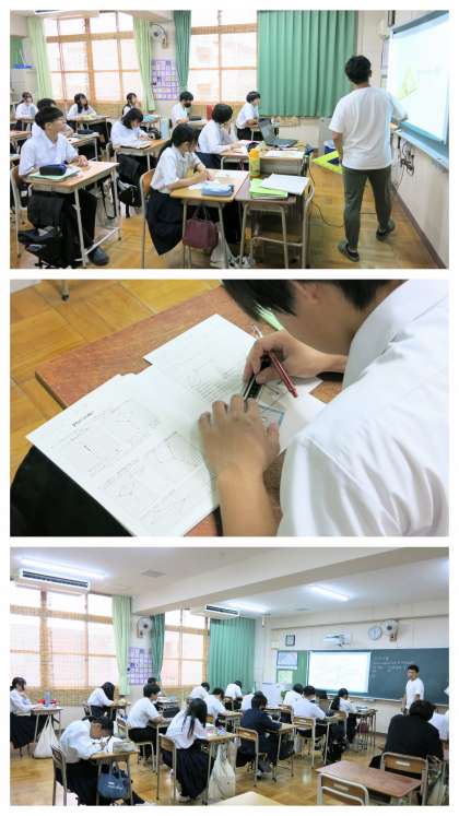 中間テストの最後の範囲でしょうか、授業の終わりには、力を2つの方向の分力に分けるための作図のプリントが配られました。