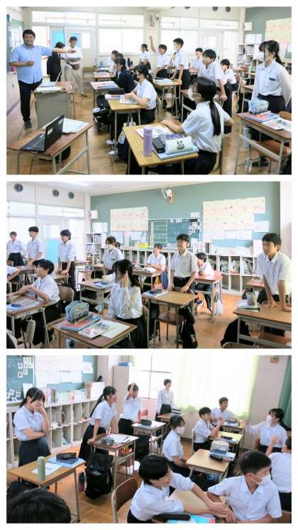 2年生の英語の学習の様子です。まず、授業の冒頭で、新しく来られた先生にご挨拶をしていただきました。