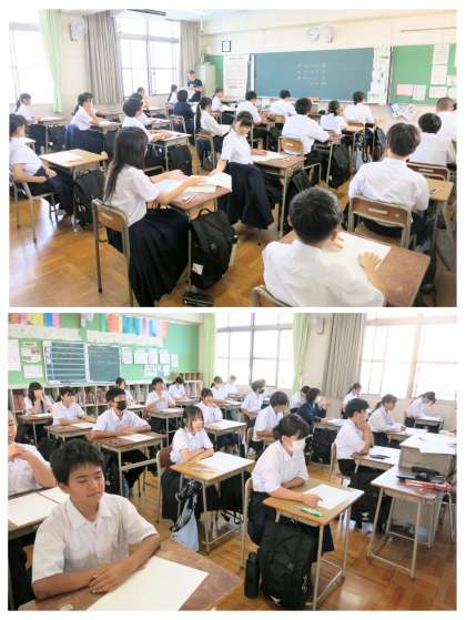1年生の1時限目「理科」のテスト前の様子です。