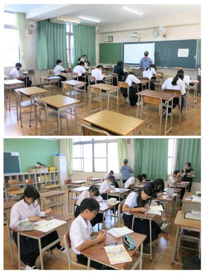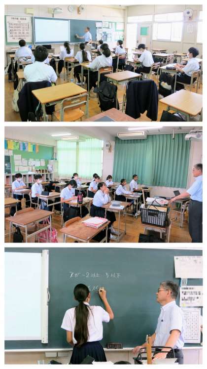 1年生の数学の学習の様子です。中間テストを終えて、新しい単元の「比例と反比例」の学習へと移っています。学習は「少人数の分割」で展開されています。