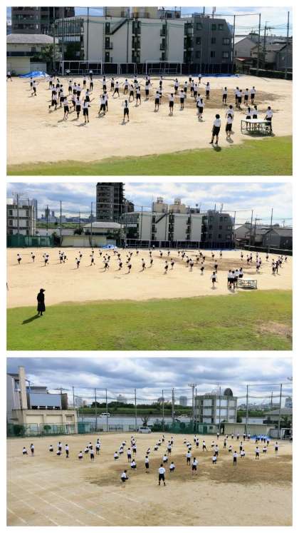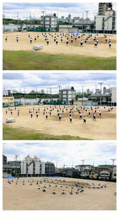 5時間目、急遽、団のリハーサルを行いました。明日の5時間目に予定していましたが、どうも雨模様のため、前倒しです。前半の25分を赤団、後半の25分を青団がグランドを使っての練習です(残りの25分は体育館の使用です)。