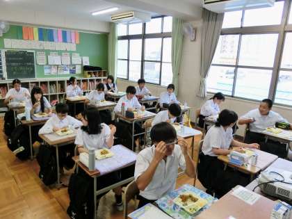 キャベツのひじきドレッシングは、乾燥したひじきをぬるま湯でもどした後、ひじきを乾煎りし、米酢、しょうゆ、砂糖、塩で味付けをして煮、綿実油も加えて、配缶時に湯がいたキャベツにかけて、和えられています。