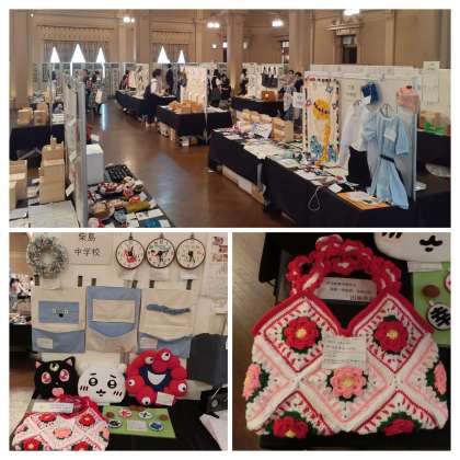 舞台発表の部と展示発表の部があり、展示発表の部では本校より家庭科の代表作品が出展されました。授業での作品で1年生の3名、2年生の3名、3年生の3名、さらに夏休みの自由課題で3名の12名です。