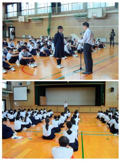 その後、校長先生からはフェスタの振り返り、気分一新、後期のスタート、急な季節の移り変わりからの体調管理、3年生の進路相談についてのお話をしました。