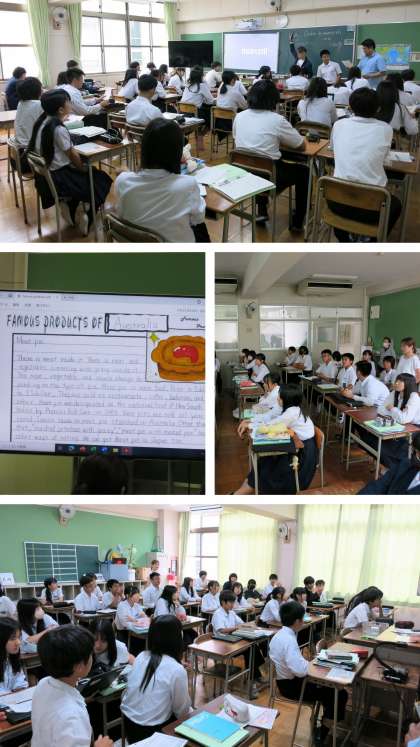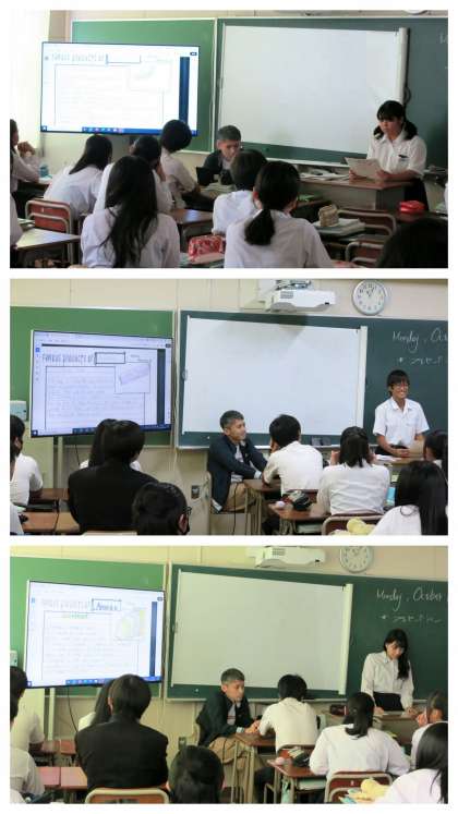 今日の学習テーマは自分のお気に入りの国のお気に入りの製品「FAMOUS PRODUCTS OF [ 国名 ]」について調べ英文にまとめ、みんなにプレゼンテーションする学習でした。