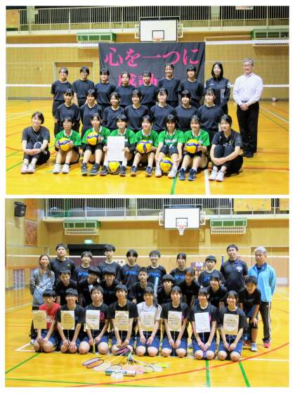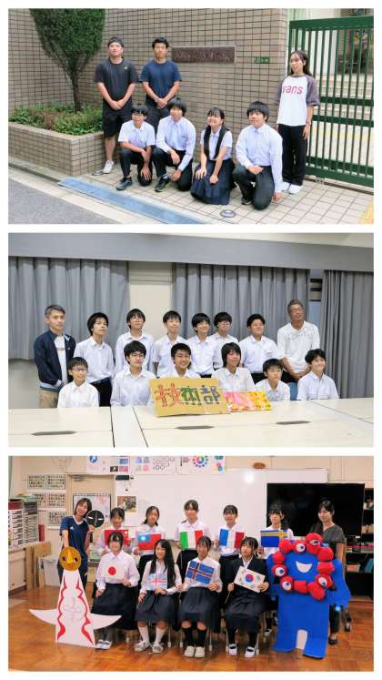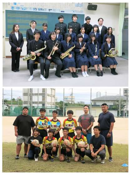 写真は上から、生徒会、技術部、美術部、吹奏楽部、ラグビー部、バレーボール部、バスケットボール部です。写真屋さんの横から撮影をさせていただきました。