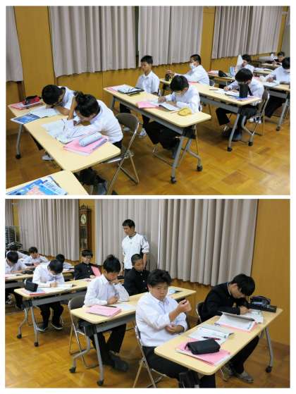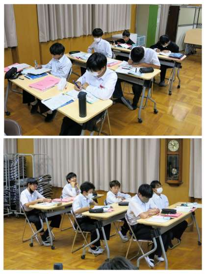 1年生男子の保健の学習の様子です。今日は多目的室で「保健」の学習でした。