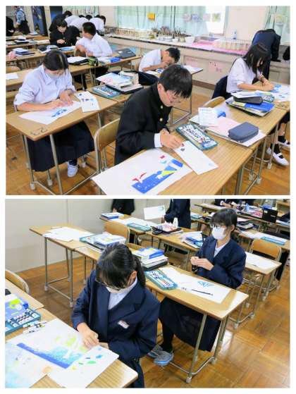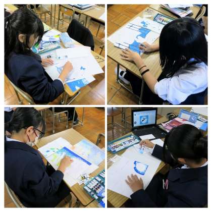 1年生の美術の学習の様子です。以前に紹介した「点描画」に取り組んでいきます。