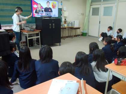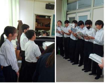 1年生音楽の授業の様子です。生徒たちは、国歌「君が代」の曲はよく知っていて、すぐに歌うことができました。外国の国歌を知っている人は、ほとんどいませんでした。そこで、外国の国歌をいくつか聞きました。歌いやすい国歌は、歌ってみました。歌った後は、敬意をもって拍手しました。
