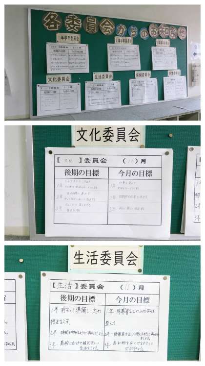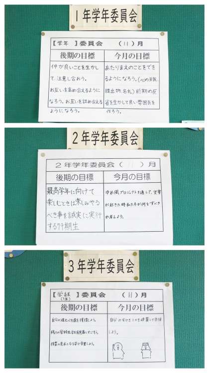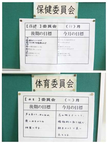 後期の目標と今月の目標について、委員会内で話し合われ、ていねいにまとめられていました。