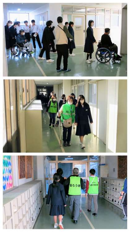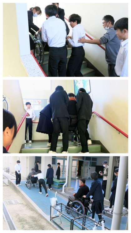 その後、エレベーターが使用できないことを想定(震災)して、実際に教室のある3階から、階段を使った体育館への避難訓練も実施しました。