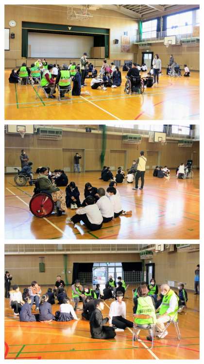 最後に体育館では、避難訓練の振り返りと感想を共有し合いました。