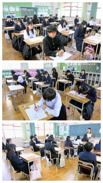 これまでに十分に学習を進めてきているとは思いますが、テスト終了時間のギリギリまであきらめずに頑張り、1問でも多く正解としましょう。