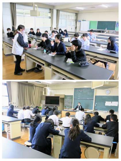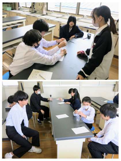 2年生の理科の学習の様子です。「地球の大気と天気の変化」という単元へと学習は移り、今は、「空気中の水の変化」の内容で、「雲のでき方」について学習しています。