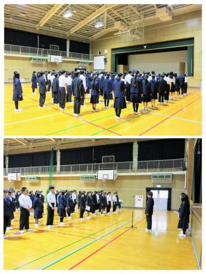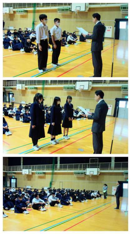 全校朝礼 部活動 頑張っています(11月17日)