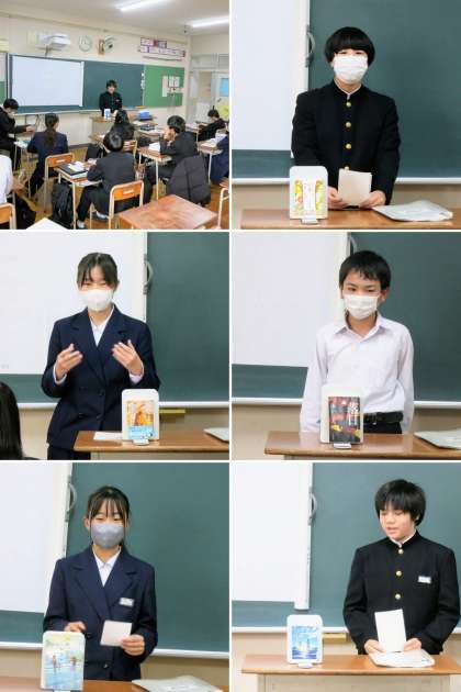 11月4日の授業では、班内で発表をし合い、先生からの推薦も含めて、今日はクラスの5名(8名だったのですが3名が欠席でした)でのバトルです。