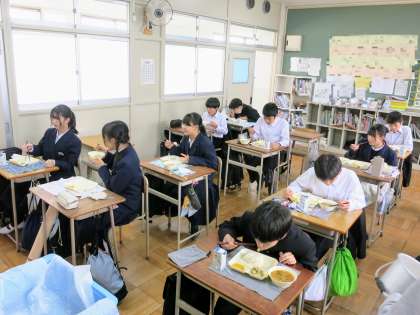 いわしのつみれ汁は、加工済みのいわしの団子を一度、下茹でし、しょうが汁と料理酒で下味を付けて臭みを取った後、昆布と削り節の合わせ出汁で、大根、人参、ごぼうとともに煮て、赤みそと白みその合わせみそで、青ねぎも最後に加えられています。