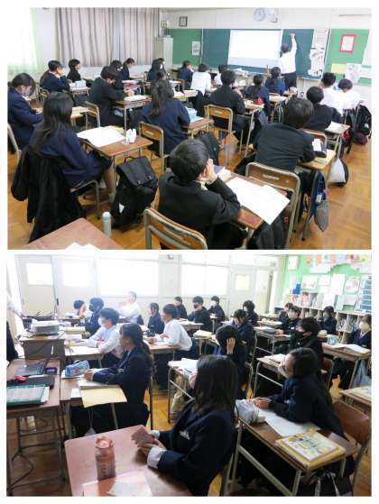数学の時間では、まず、先生からテスト問題をもとに、設問ごとの正答率と、解答のポイントが説明されました。間違っていた生徒も、先生からの説明をていねいに聞くと「あーっ!!」と、正答にたどり着いていました。ちょっとしたヒントや手がかりで、正答にたどり着けないのですね。
