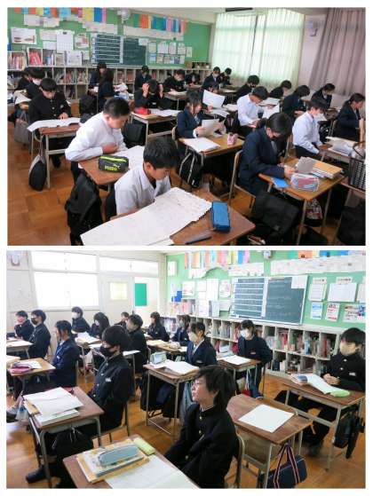 1年生の数学の学習の様子です。今日は朝の1時限目から、先週の期末テストの返却ラッシュです。