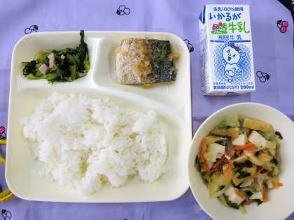 鯖のおろしじょうゆかけは、鯖を焼き物機で焼き上げた後、大根おろし、しょうゆ、みりんを合わせて煮立て、配缶時にかけられていました。