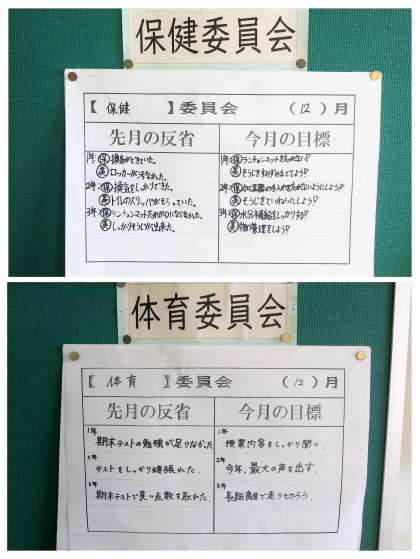 11月の反省と12月の目標について、それぞれ話し合い、ていねいにまとめられていました。2学期の最終、今月も充実した活動にしてください。