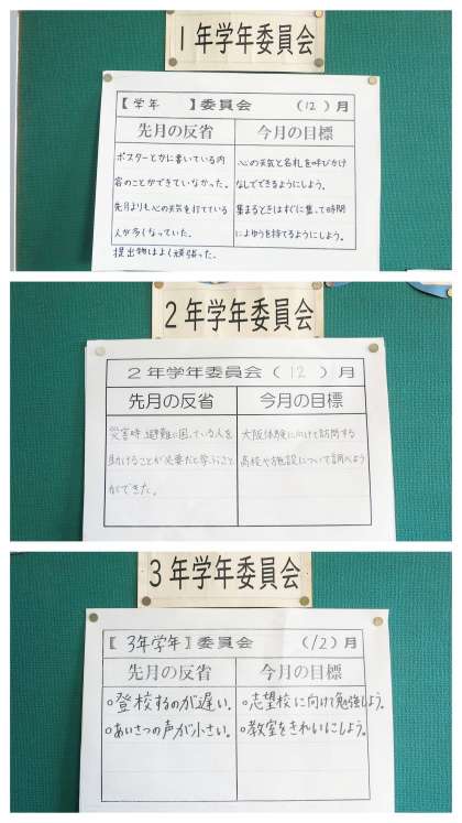昨日に行われました、生徒各委員会の報告が掲示板に貼り出されていました。