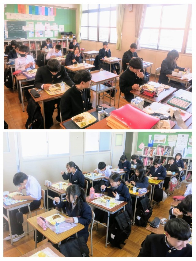 冬野菜のカレーライスは、綿実油でにんにくとしょうがを香りよく炒め、薄切りの牛肉、玉ねぎ、人参、大根、蓮根を加えて炒め、米粉を使ったカレールーの素で煮込んだのち、仕上げにグリーンピースが加えられていました。大きくカットされた蓮根や大根を中心に、お野菜がゴロゴロと入っていました。生徒たちも大満足で、たくさんお替りをしてくれました。