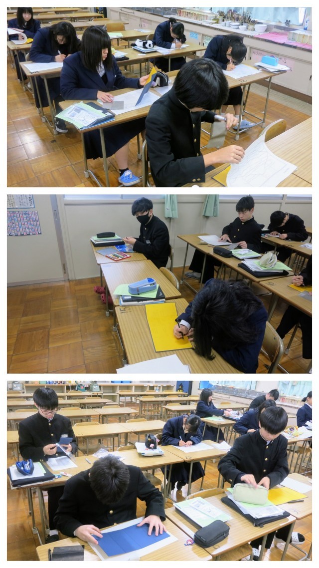 3年生の美術の学習の様子です。金屏風(四曲)を台紙にした「点描」に取り組んでいます。