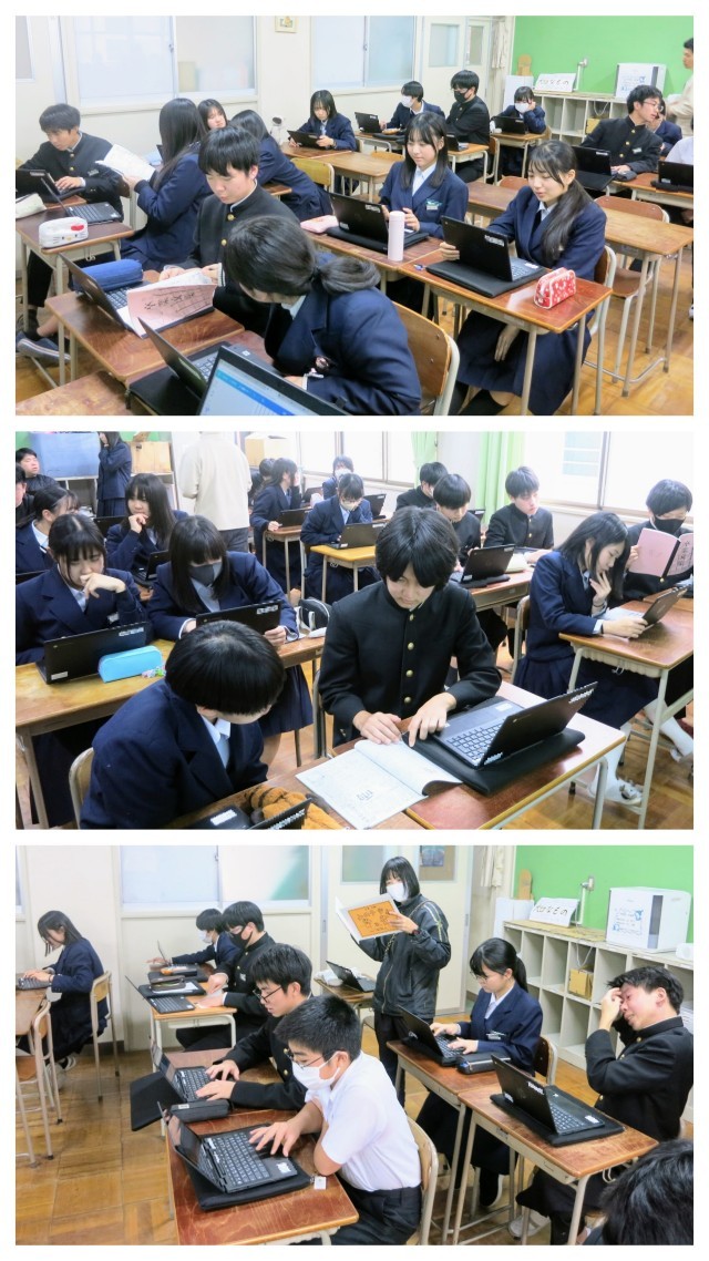 3年生は卒業制作の1つとして、「卒業文集」に合わせて綴じ込む、「自分新聞」の制作を学習者用端末(Canva)で行っていました。将来に読み返した時に、「15歳のときの自分」がどのようだったかを書き綴っていきます。