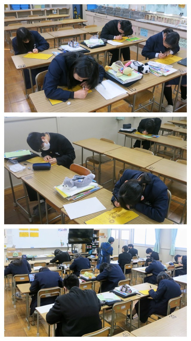 3年生美術 指先も目もお疲れです(2月3日)