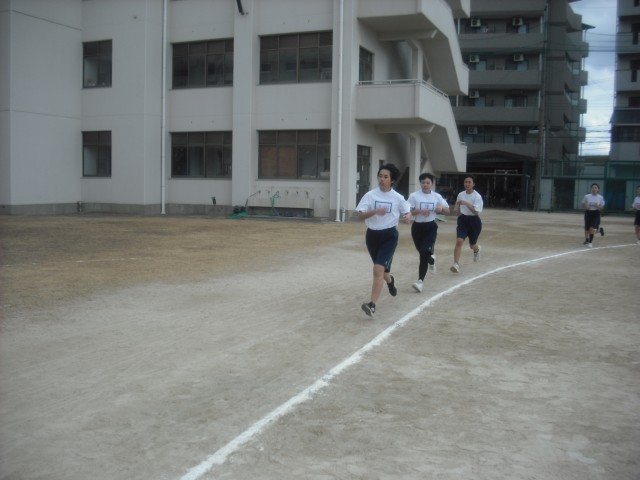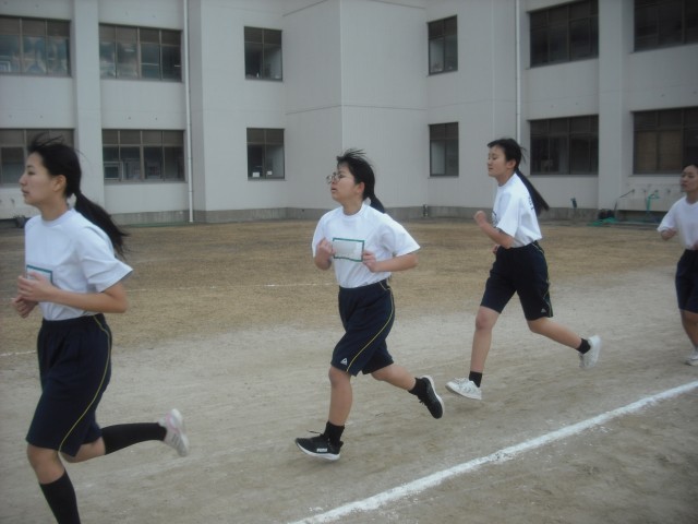 3年生女子体育の様子です。3学期は、長距離走の単元にはいっています。前の授業では1000mや2000m走をしましたが、今日は、インターバル走を行いました。、1周200mのタイム目標を45秒~65秒以上まで6つに設定してA~Fチームをつくり、自己の走力でどのチームに入るかを選びました。各チームごとにスタートして、目標タイムをクリアできるよう頑張りました。楽ではないけれど、仲間と一緒に目標タイム挑戦できたようです。同じチーム内で、「がんばれ!」や「ナイス ラン!」の声かけは、気持ちよかったです。
