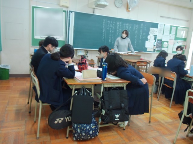 1年国語の授業の様子です。小説「トロッコ」の内容を読み進めており、今日は、最後の段落について考えました。この段落から、作者はどんなことを伝えたいのかを考えて、ワークシートに書き、班ごとに発表しました。また、「全然何の意味もないのに…?」の一文から、現在の作者のことを考える意見などを共有できました。