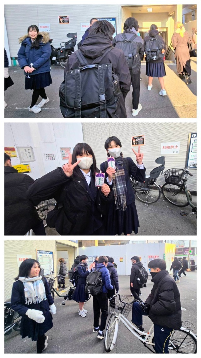 待ち合わせ場所には、少し余裕を持たせての集合時間の設定にもかかわらず、5分、10分と早くに集まってきていました。それぞれの高校に向けて、「行ってきまーす。」「がんばってきまーす。」と、受験予定の生徒は無事に出発していきました。当たり前ですが、笑顔でのあいさつの中にも、やはり、緊張の表情の見え隠れしていました。