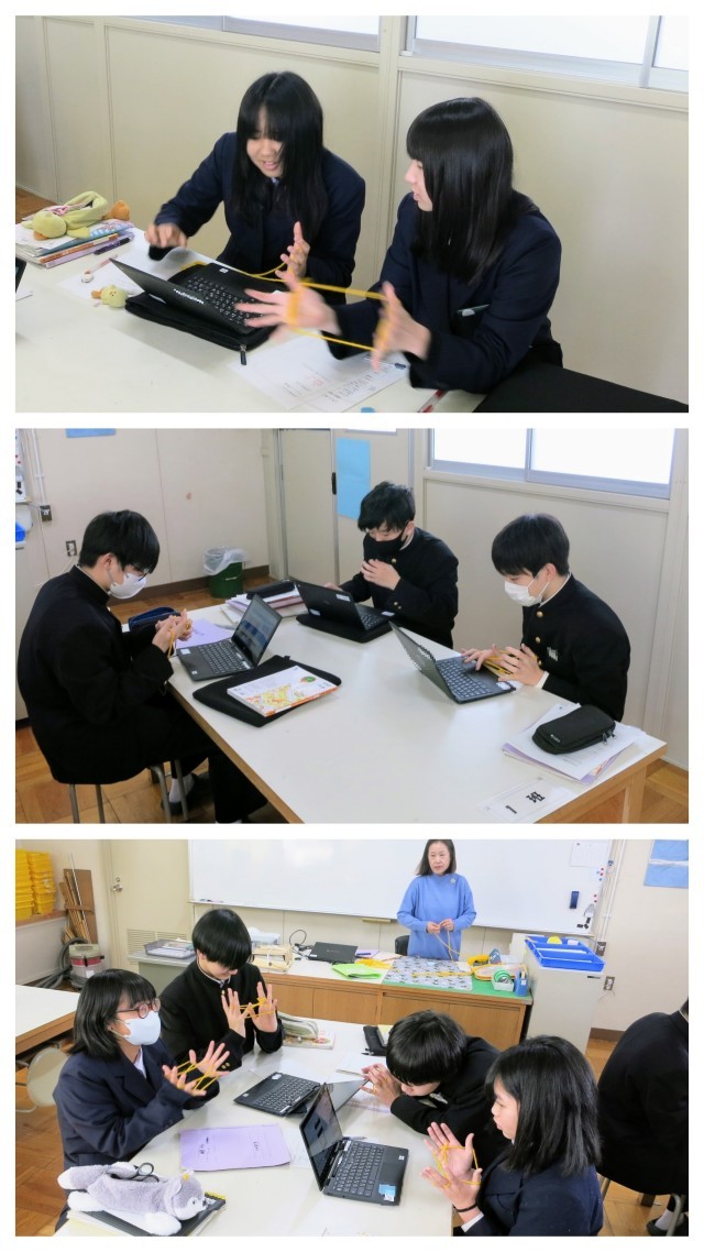 後半は、「遊び」も幼児にとって重要な要素・活動で、糸一本で出来る「あやとり」、紙一枚で出来る「折り紙」など、「伝承遊び」という言葉も出てきました。その後、みんなで「あやとり」を過去の記憶を頼りに行いました。「川」「ほうき」「はしご」「東京タワー」「星」「ゴムゴム」など、ネット上にも作り方がたくさん紹介されていました。